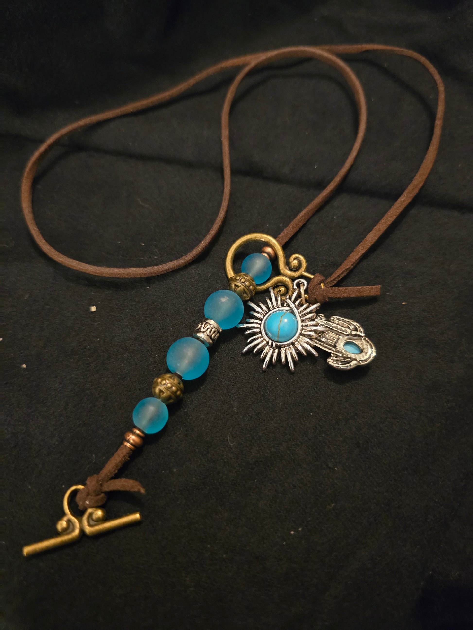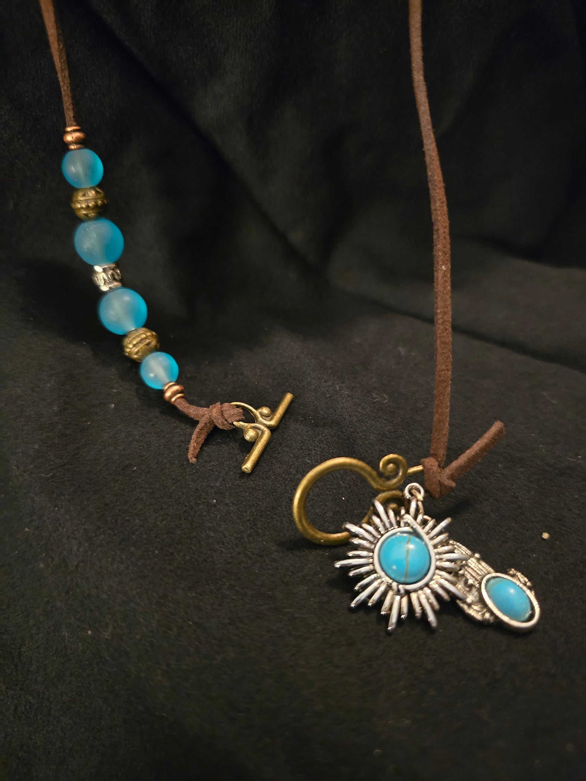 Introducing our new "Cactus and Sun" necklace, handcrafted with genuine suede cord. Embrace a unique western style and add a touch of earthy elegance to any outfit. Perfect for nature lovers and those seeking a bohemian twist!