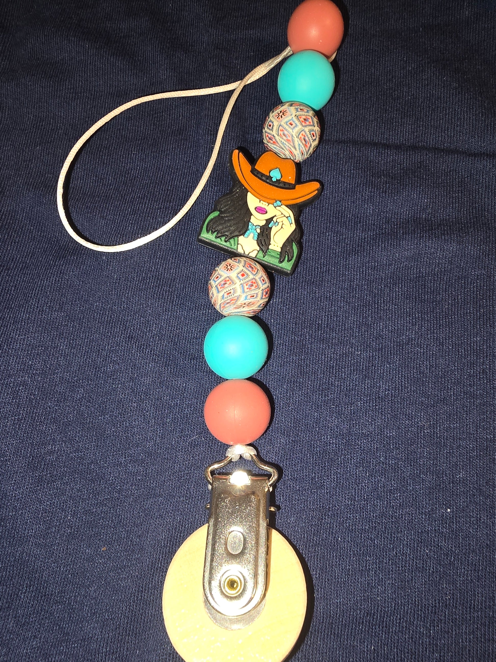 Cowgirl pacifier clip