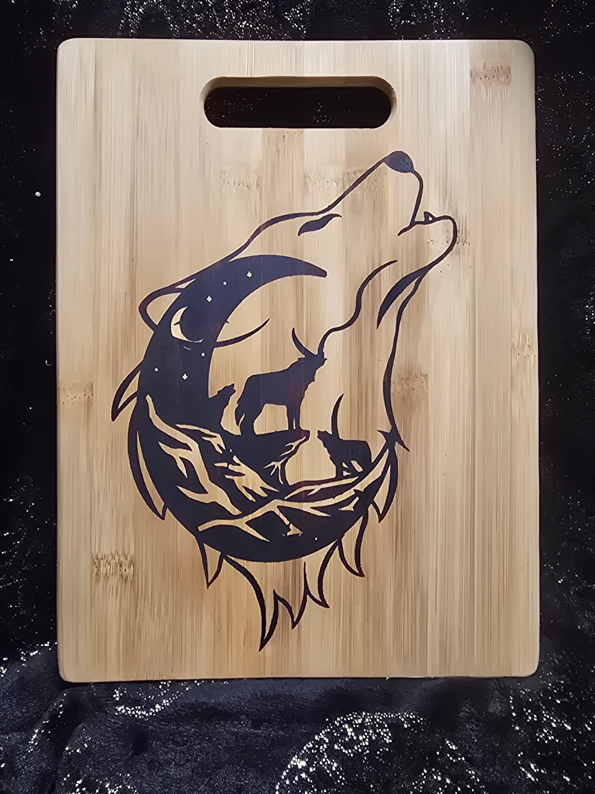 "Add a touch of personalization to your kitchen with our Custom Wood Burned Cutting Board. This unique cutting board combines functionality with aesthetics, making it the perfect addition to any home chef's collection. Each board is handcrafted and features a one-of-a-kind wood burned design. Upgrade your cooking game with this quirky must-have!" 12x9 Bamboo