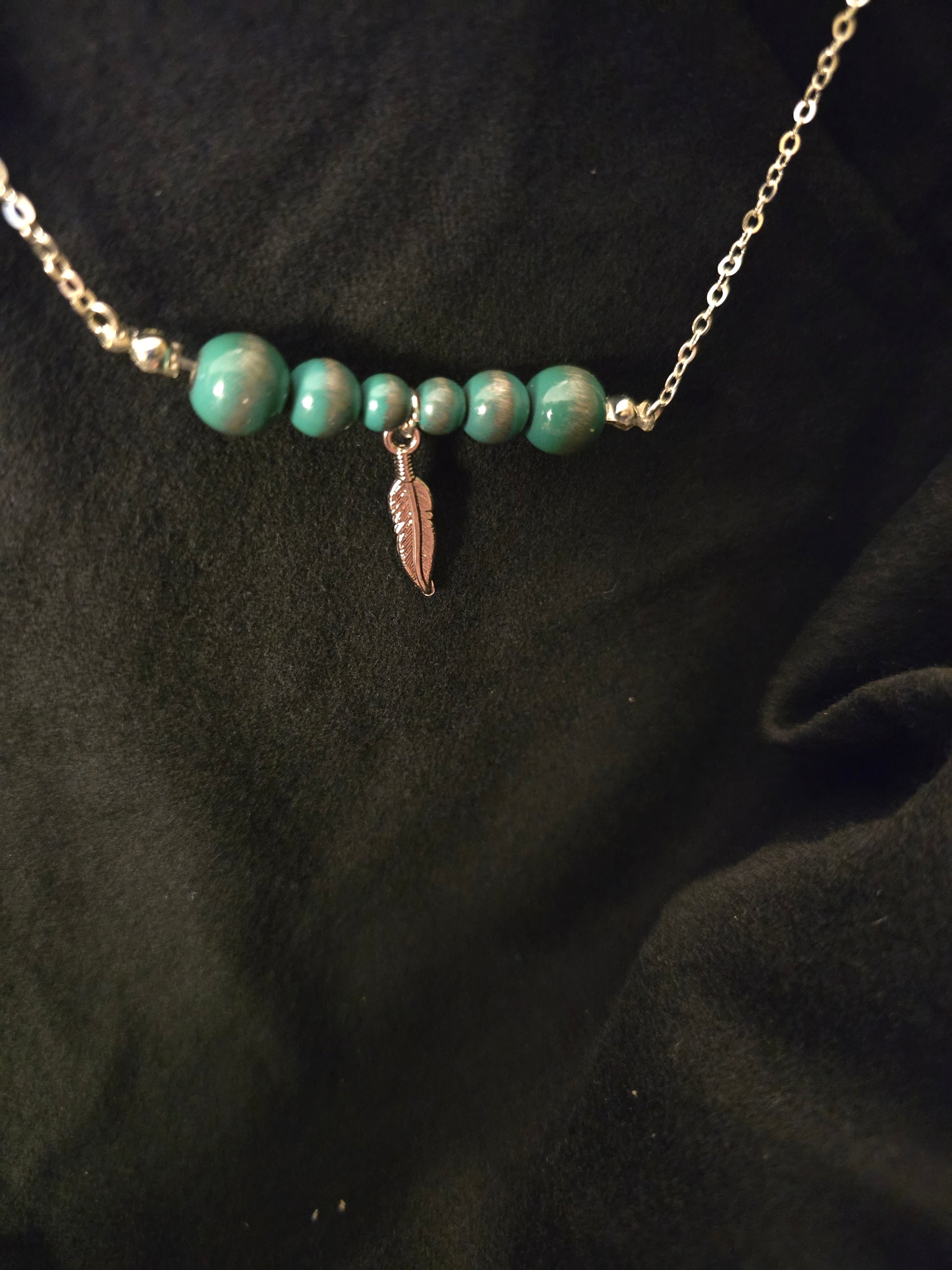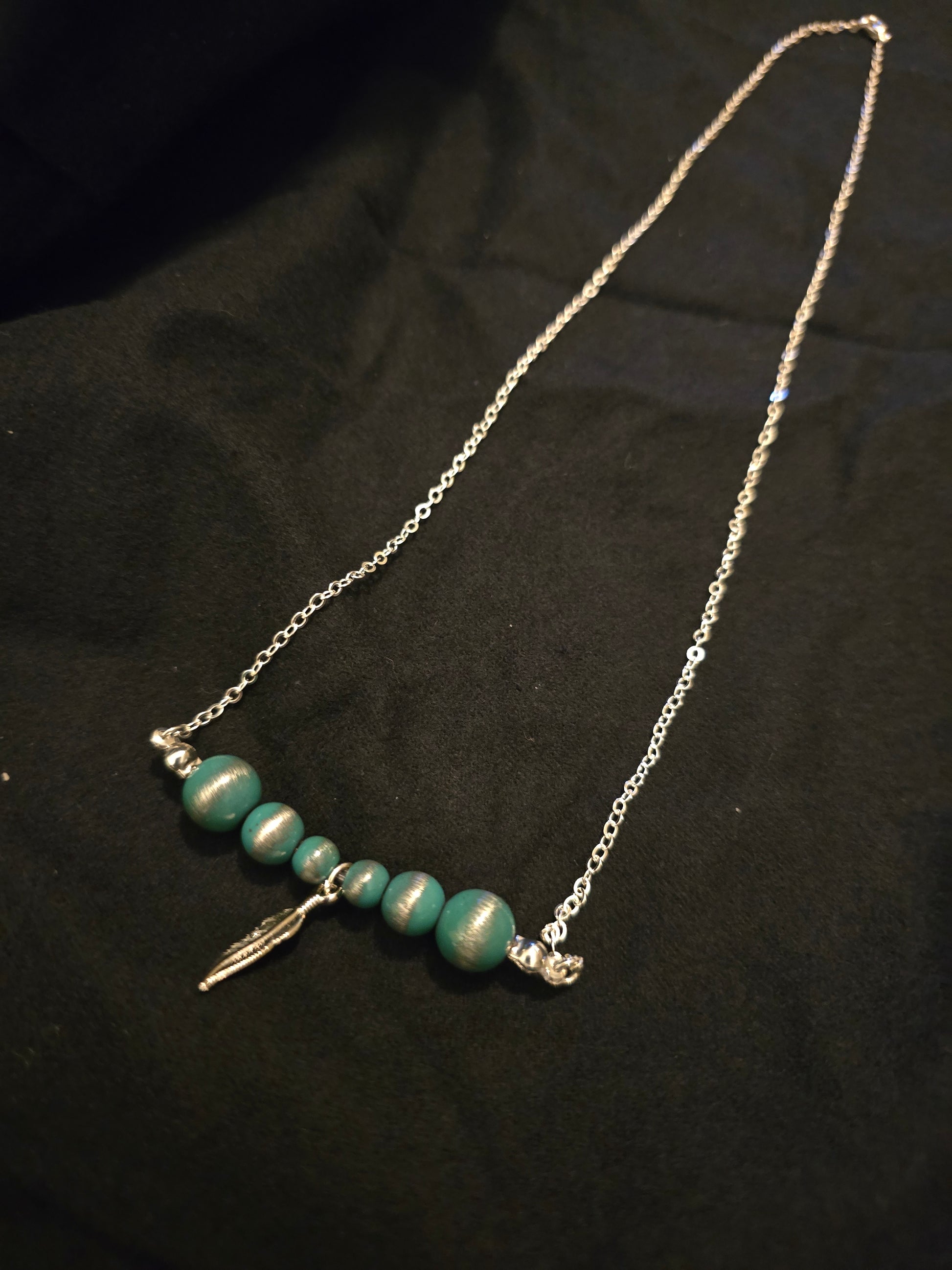 Create a unique and stunning look with Feather and Teal! This handcrafted necklace features a beautiful silver chain, adorned with a delicate feather and vibrant teal beads. Elevate any outfit with this statement piece.