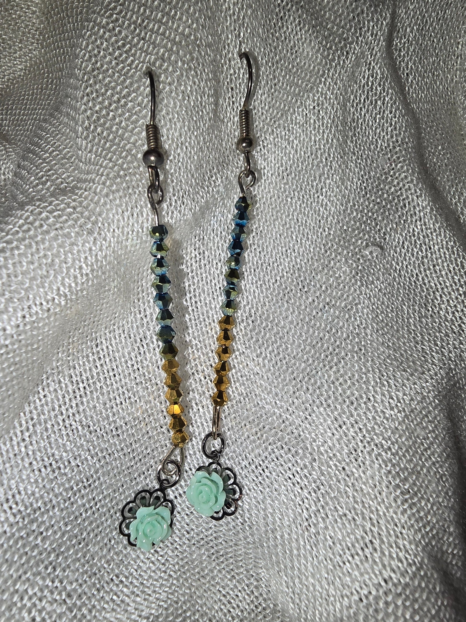 "Add a touch of nature to your look with these unique green rose earrings. Handcrafted with seed beads, these earrings bring a pop of color and fun to any outfit. Perfect for the quirky and stylish individual. (No watering required!) "