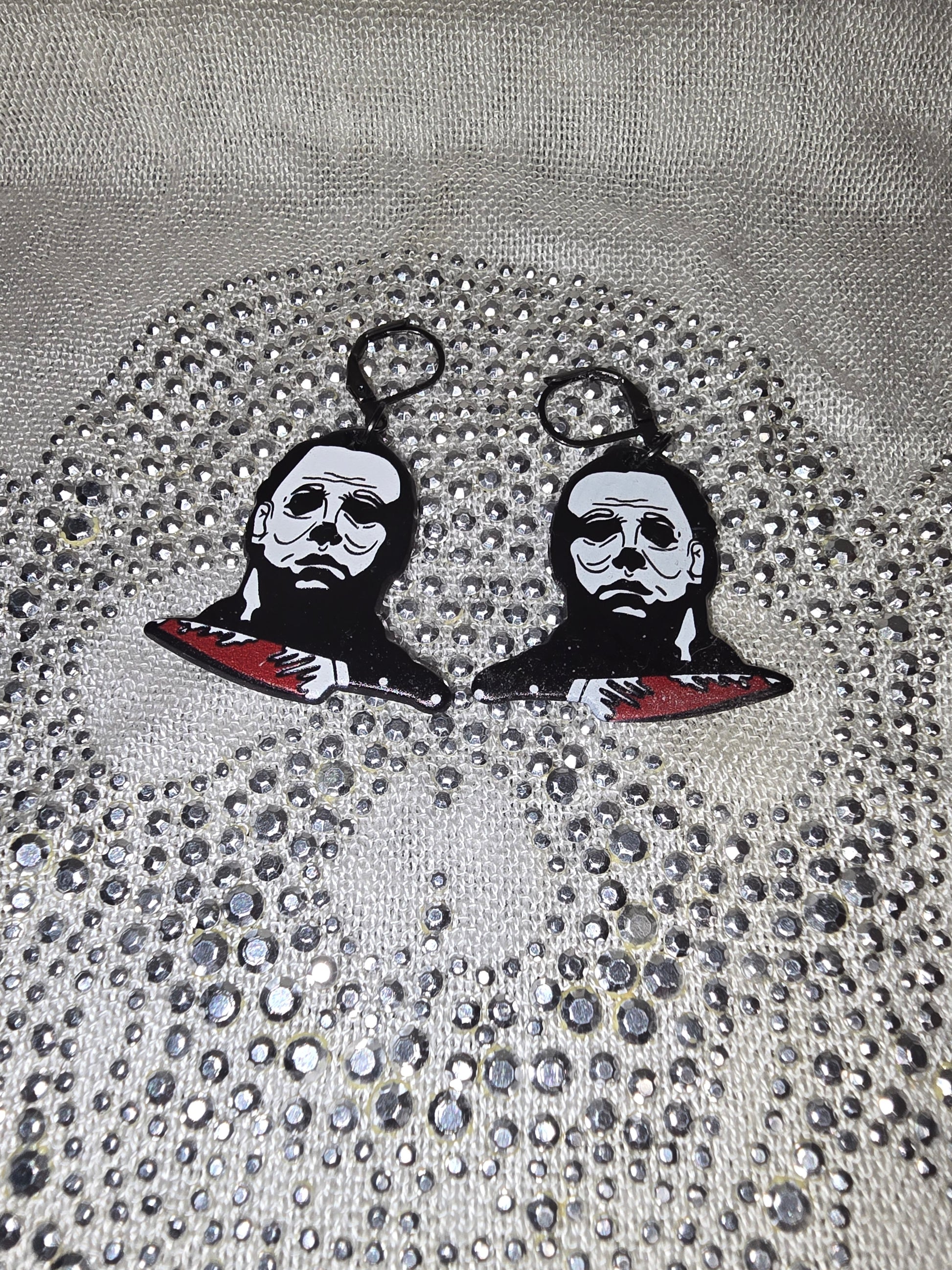 "Spook up your style with these Michael Myers earrings! Perfect for Halloween or any horror fan, these earrings are sure to make a killer statement. (Pun intended)."