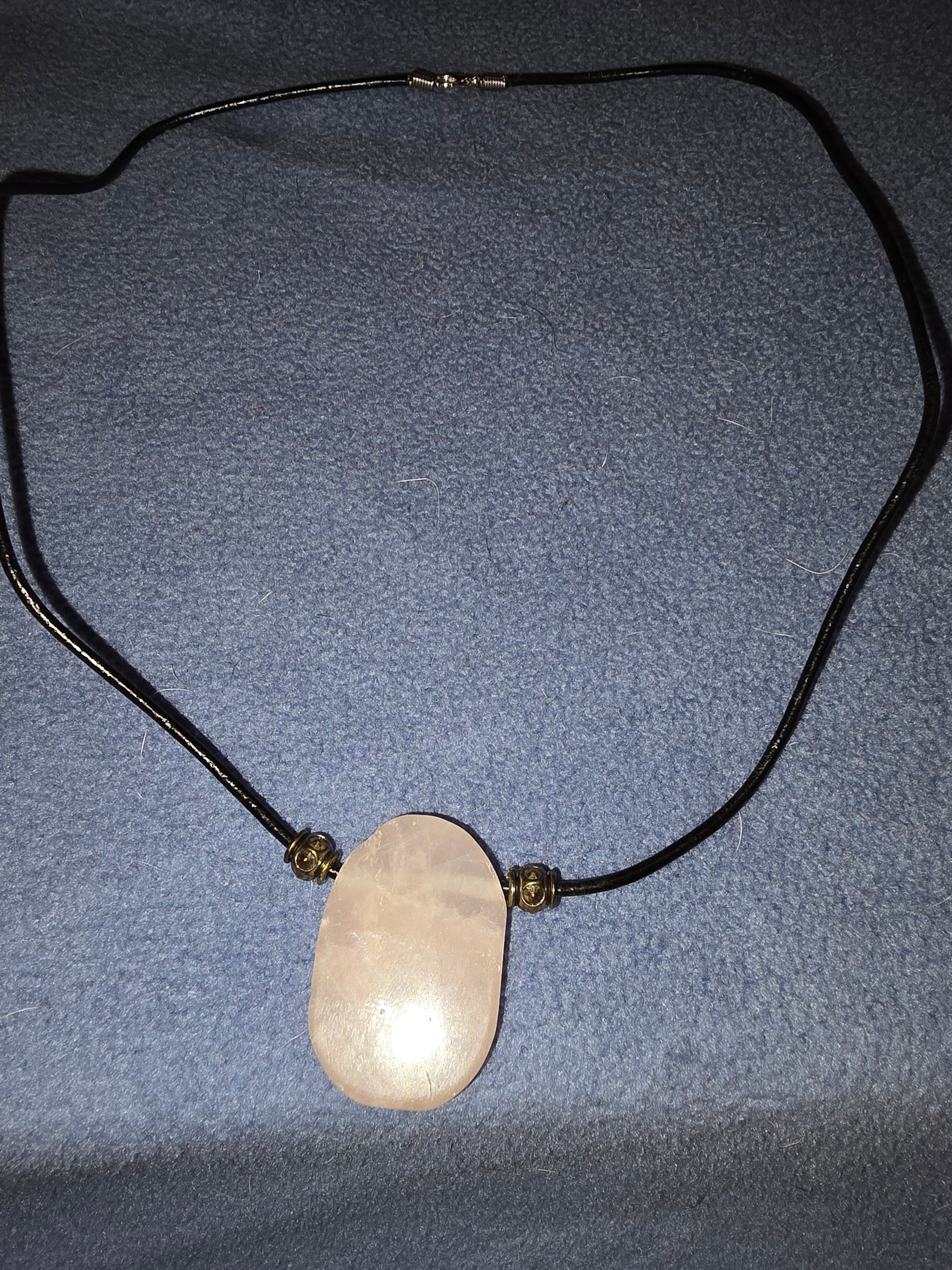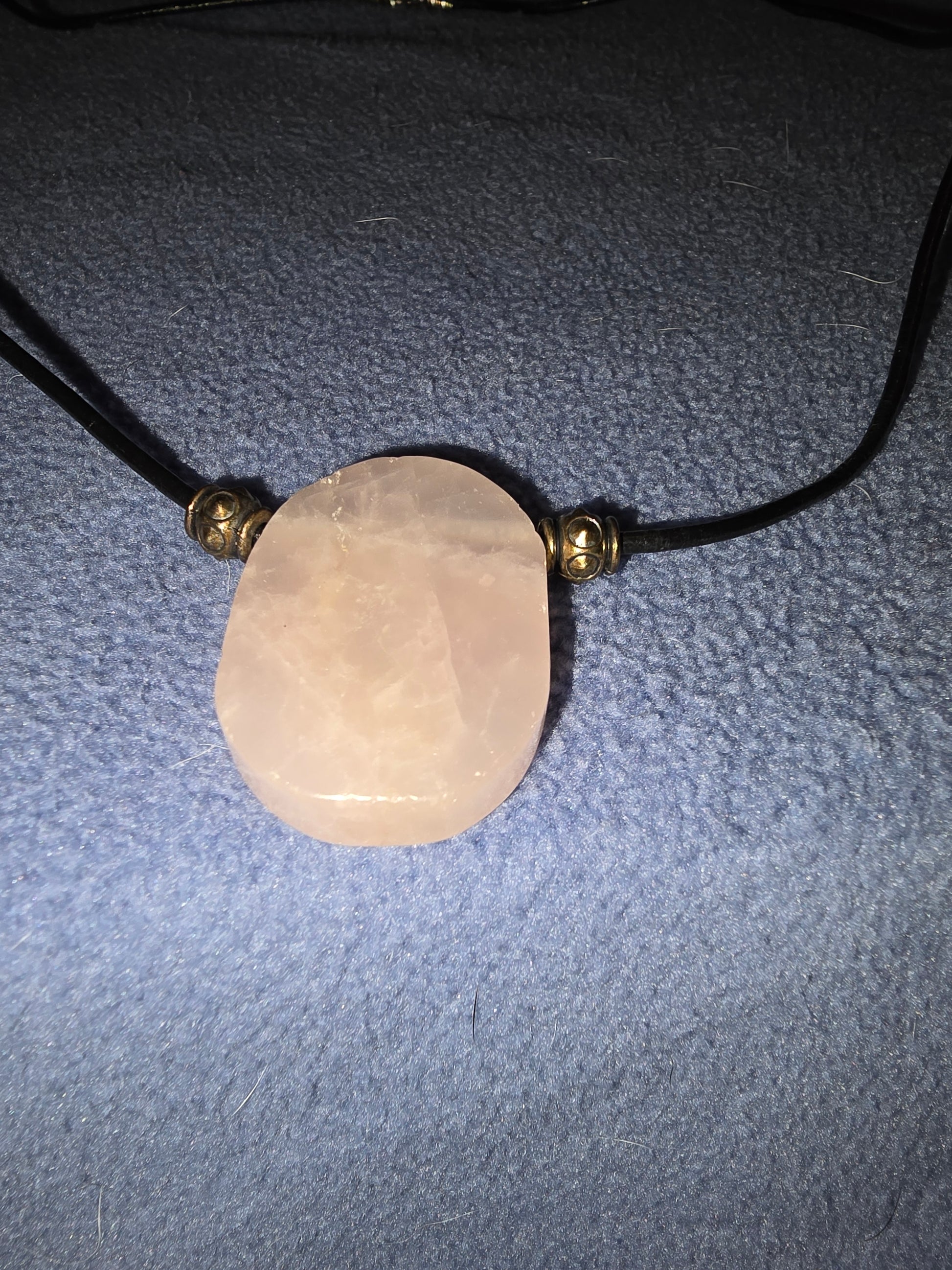 Add a touch of love and style to your outfit with our Rose Quartz pendant. Crafted with a striking black cord and silver bead accents, this pendant will make you stand out from the crowd. Perfect for any occasion, let this beautiful piece bring positive energy and harmony into your day.