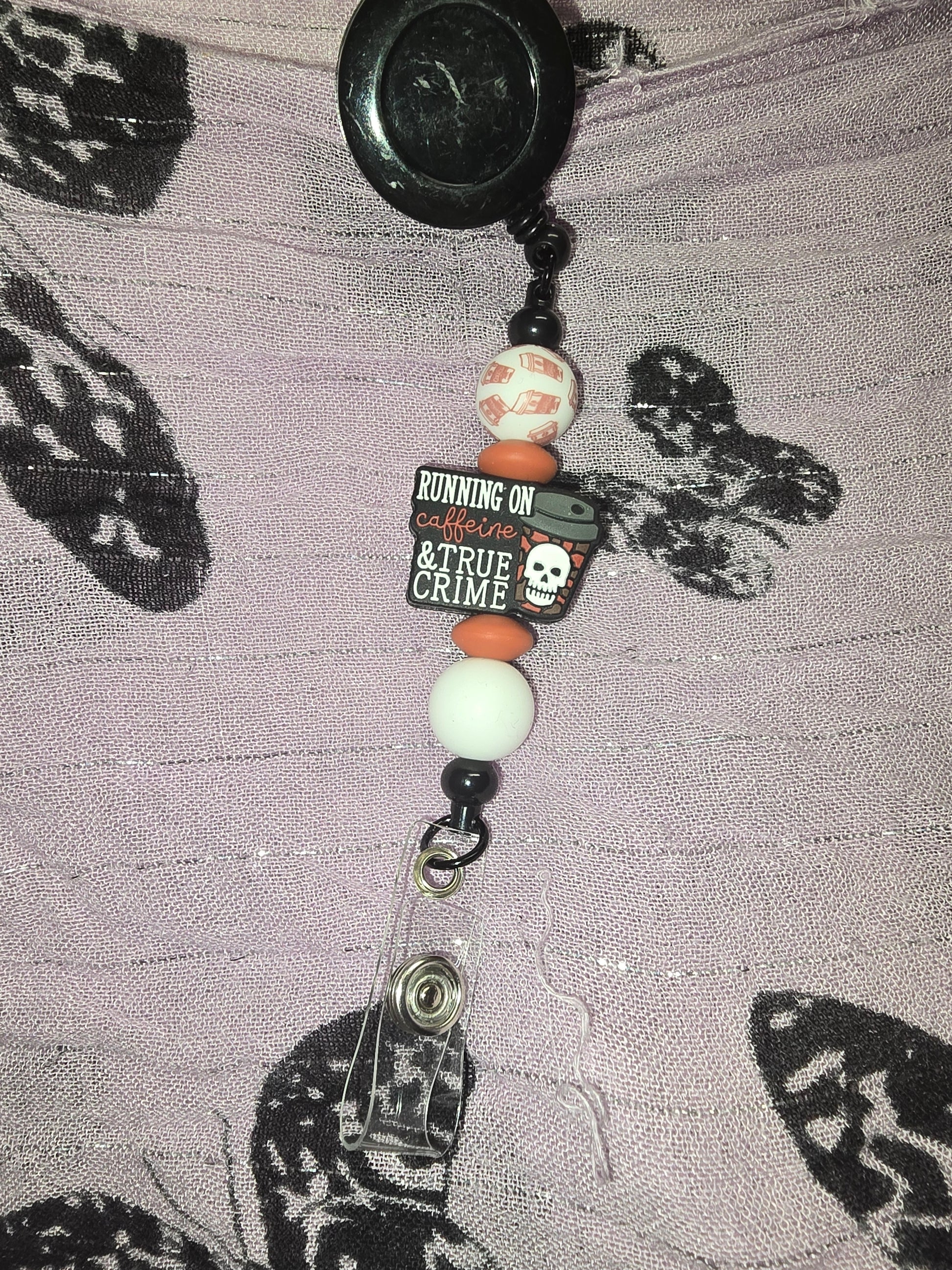 "Unleash your inner detective (or detective wannabe) with "True Crime and Caffeine"! Featuring a quirky badge reel that will add some pizzazz to your daily grind. Fuel your caffeine addiction while indulging in your favorite true crime tales."